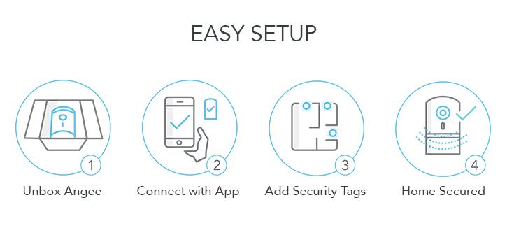 Angeeは、監視カメラと、ドアに貼り付ける子機のセットになっています。