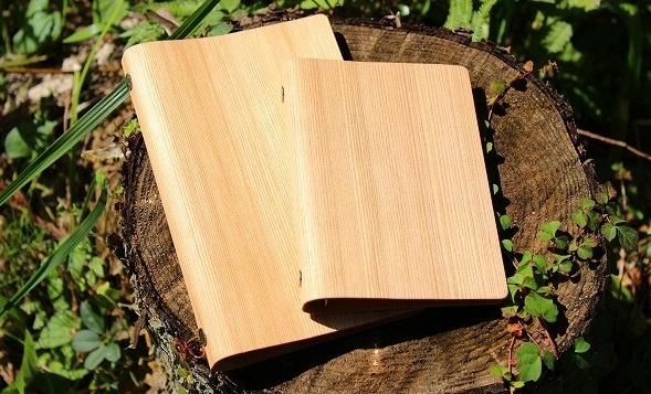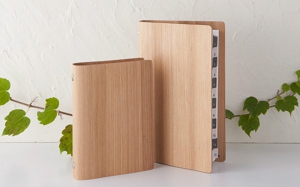 木製のシステム手帳、一見すると単に木にしただけにも見えます。