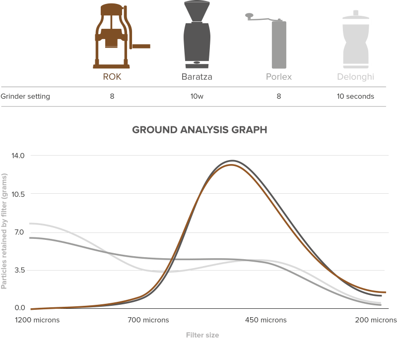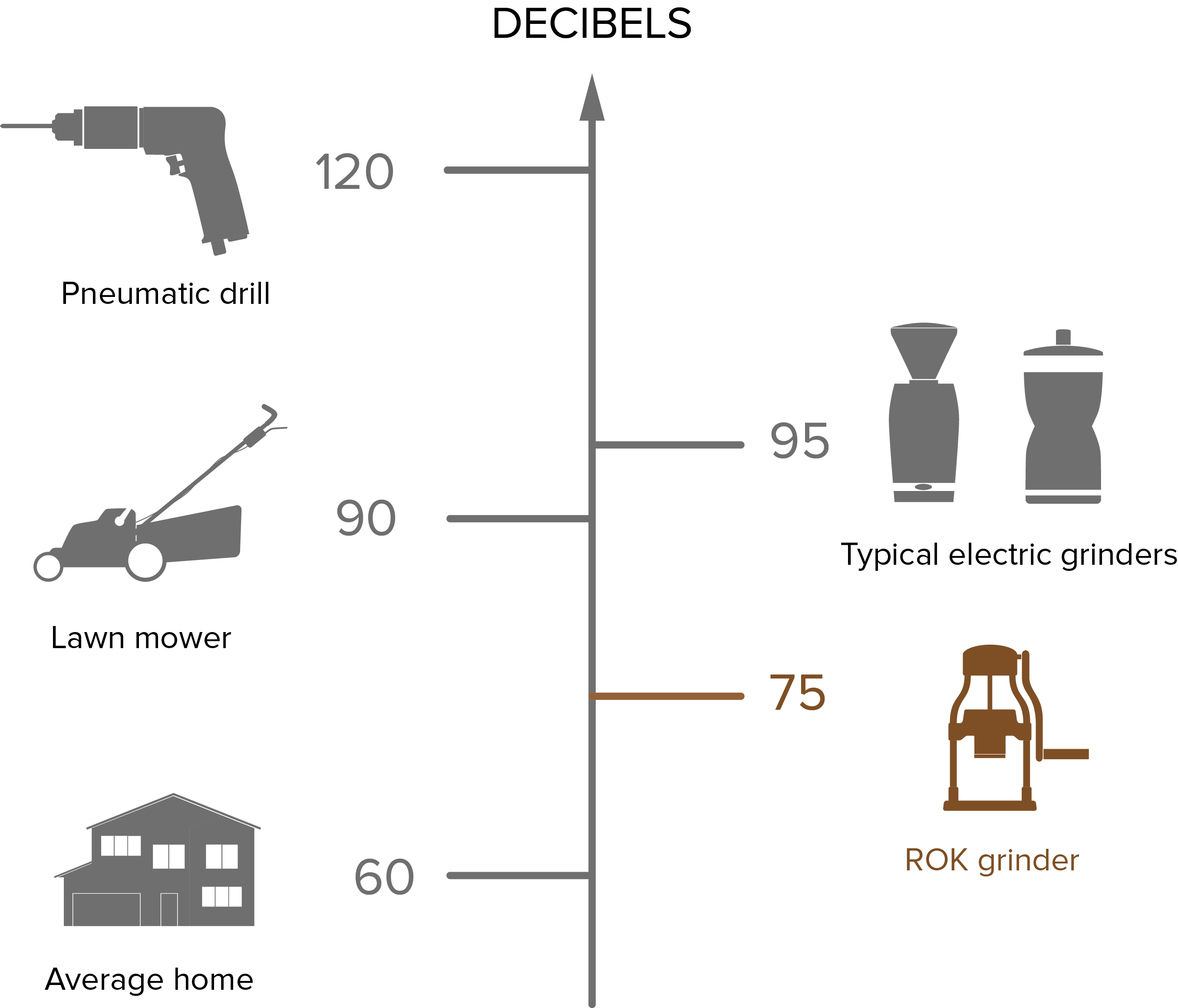 ミルによっては豆を挽く際に大きな摩擦が発生してコーヒー粉の質を悪くしてしまうことがあります。ROK Coffee Grinderはゆっくりと回転して過剰な摩擦を起こしません。