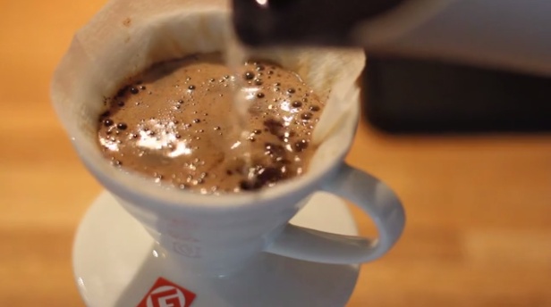 お湯を入れドリップしておいしいコーヒーのできあがり。