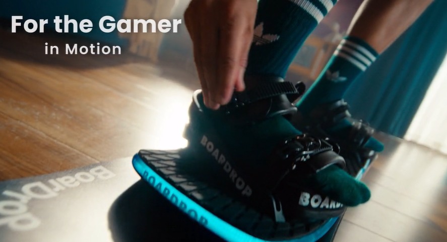Boarddrop (ボードドロップ)は、足につけてプレイするスノーボ―ド型ゲームコントローラーです。