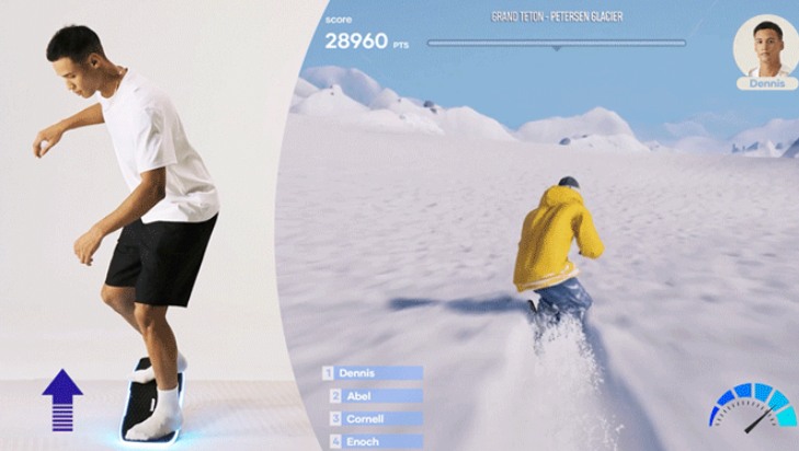 足につけてプレイするスノーボ―ド型ゲームコントローラー Boarddrop (ボードドロップ)