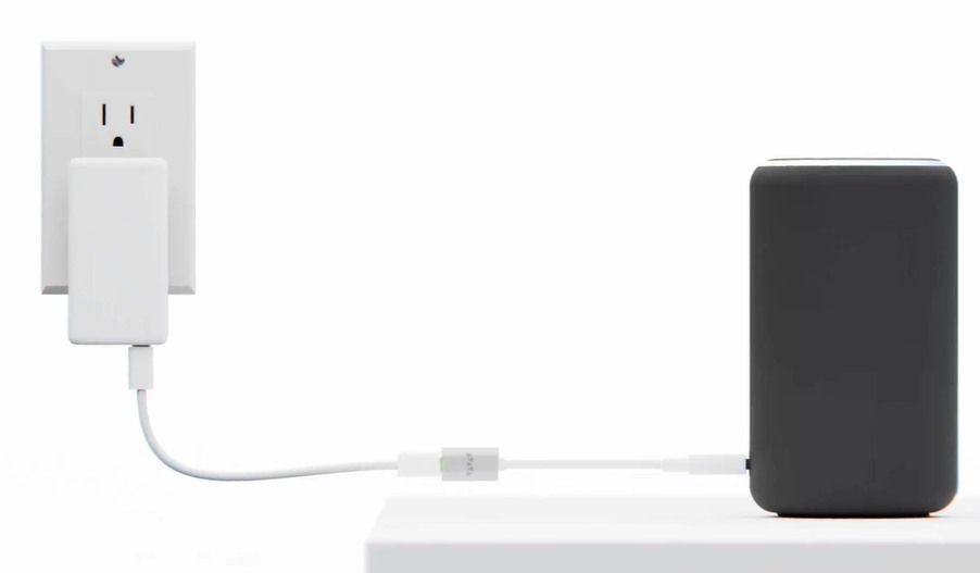 そして、このアタッチメントを介してコンセントなどにつなげば、ACアダプターを使うことなく給電することができます。ACアダプターがないので電源コードがすっきりします。