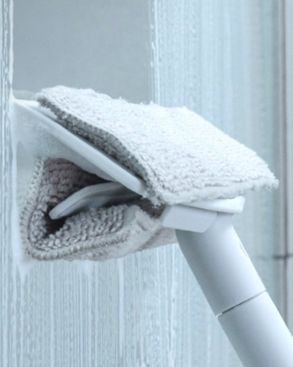 このワイパーは、右側が洗剤や水などを落とすワイパー、左側が仕上げ用パッドとなっています。そのため、窓ガラスや鏡などの拭き掃除から仕上げまでこれ1本でできるのです。