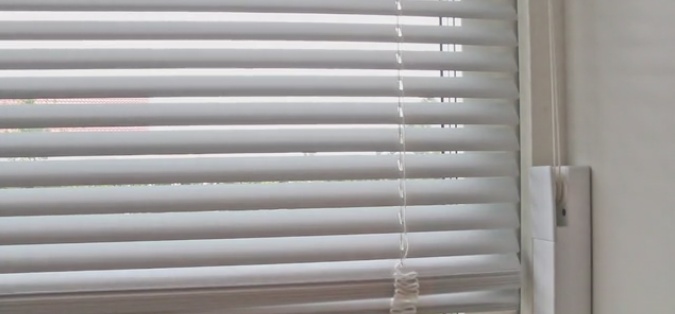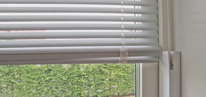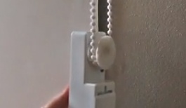 MOVEはブラインドのそばの壁に、両面テープで貼り付けて使います。ブラインドの紐部分をMOVEが動かすことで上げ下げします。