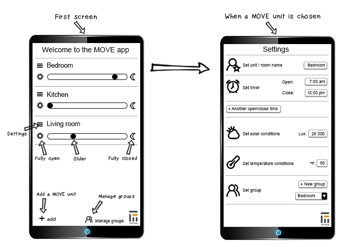 MOVE(ムーブ)は、ブラインドをスマホから操作して上げ下げできるようにするグッズです。工事無しで設置できるところが特徴です。